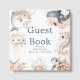 Beautiful baby shower guest book features a dolphin, whale, jellyfish, seahorse, starfish and turtle with coral pink floral arrangements. Perfect for a baby shower. The words can be changed to suit your own details or requirements