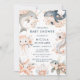 Beautiful baby shower invitation features a dolphin, whale, jellyfish, seahorse, starfish and turtle with coral pink floral arrangements. Perfect for a baby shower. The words can be changed to suit your own details or requirements