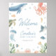 Welcome friends and family to you or a loved one's baby shower with this elegant under the sea themed welcome sign.