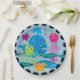 Our Under the Sea paper plates are perfect for ocean and sea theme birthday parties but can be used for many other occasions or for every day use as well! These colourful, fun ocean theme paper plates feature a green octopus, pink jellyfish, pink starfish, lavender seahorse, orange crab, purple fish, ocean waves, a big blue whale with waterspout, and black trim around the plate edge!