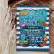 Happy Birthday! Super cute, kid's fun sea life, under the ocean nautical theme neutral birthday party invite on midnight blue and white stripes with bright colours for boy or girl. Colourful, aquatic, cartoon sea creatures include aqua and yellow octopus, green and orange sea turtle, teal and orange fish, turquoise dolphin, orange seahorse, light pink crab, and orange and pink coral on the ocean floor. Funny fonts appear to be floating underwater with bubbles in the background. 1st, first, birthday can be changed to 2nd, 3rd, 4th, 5th, etc. Perfect for baby, babies, infant, toddler, or older children.