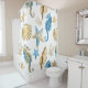 Under the Sea Blue & Gold Seahorse Beach House Shower Curtain