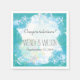 Tropical, under the sea, wedding napkins with custom text. This original design has turquoise and blue colours, with fish artwork and a starfish border. Personalise with three lines of template text for a beach wedding.