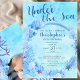 This cute "Under the sea" shells, seaweed and coral illustration themed birthday invitation is perfect for a baby boy's first birthday party. It features blue hand-drawn undersea motifs on a blue watercolor background and text that you can customise with your own details, plus a photo on the reverse side. The invitation template is customisable in the listing editor and is also available as a digital download that's printable after you personalise it.
