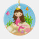 Under the Sea Cute Brunette Mermaid Custom Name Ceramic Tree Decoration