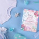 Celebrate your little mermaid with this adorable Under the Sea Girl Baby Shower design! Featuring a cute mermaid, shimmering shells, colorful coral, and playful sea creatures, this theme captures the magic of the ocean. Perfect for a summer beach baby shower, tropical celebration, or ocean-inspired party.