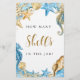 DON'T FORGET TO ADD BRIDE'S NAME AND DATE ON THE BACK. | This Under the Sea Blue and Gold Bridal Shower Game (how many shells in the jar?) features seahorses, starfishes, shells and coral reefs. For more advanced customisation of this design, Please click the "Customise” button above! Matching items are also available.