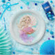 These under the sea Mermaid plates feature a mermaid with blonde hair sitting inside an oyster shell. colours include: Green, aqua, turquoise, yellow, coral, red, pink and light blue. You can personalise with your initial. Perfect for an Under the Sea theme or a Mermaid theme!