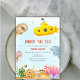Under the sea baby shower, Nautical baby shower theme, submarine baby shower theme, celebrate upcoming baby shower with our cute rustic modern watercolor nautical submarine, dolphine, jellyfish, coral, starfish, seal and other ocean animal in blue ocean colour, backside with navy blue stripes pattern. You can personalise your own text and colour via "personalise this design".