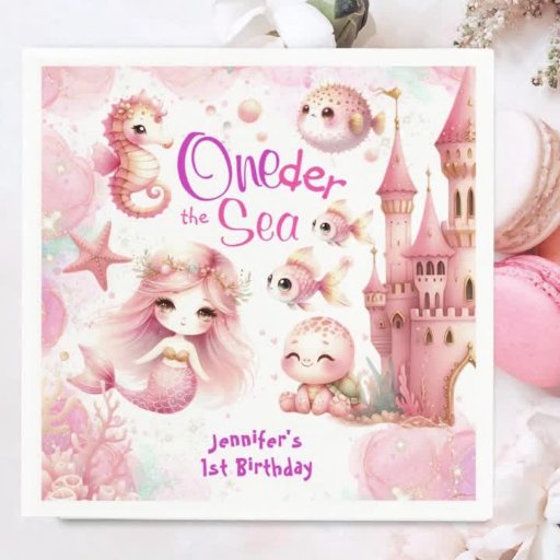ONEder The Sea Cute Pink Birthday Party CollectionDesigned by H-Art Studio Design