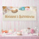 Welcome guests to your under the sea themed quinceanera party or other beach-themed special event with this custom banner featuring a pretty and colourful seashells border and your own text in gold coloured script lettering.