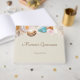 This guest book makes the perfect addition to your under the sea themed quinceanera party or other special beach parties. It features illustrations of seashells in bold, vibrant colours with your own custom text on the front and along the spine in dark brown lettering.