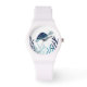 Sea Turtle swimming among the seaweed and coral in shades of blue with a white background.