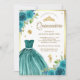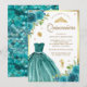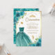 Under the Sea Teal Dress Mermaid Gold Quinceanera Invitation