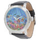 Under the Sea Art prints, posters, gifts and accessories features our original painting of a boy in a yellow swim suit and a girl in a pink bathing suit snorkelling in the ocean watching a puffer fish puff itself up digitally painted by our talented children’s illustrator, Traci Van Wagoner. This colourful artwork is also interactive. Can you find all the silly things on the left side? Find a shark sitting on an orange couch watching TV, and a tonne of other fun stuff that will capture your eye. This whimsical, fun-filled artwork has curious snorkelling children, sea horses, coral, blow fish, mermaids, starfish, eels and other sea life.
