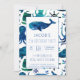 Under The Sea Watercolor Ocean Whale Pattern Personalised Birthday Invitations. Nautical ocean-themed pattern. Whale, octopus, boat, anchors, and ship wheels in blues on a white background. Coordinate with other nautical party supplies. Edit to add party details. www.SamAnnDesigns.com