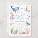 Under the sea watercolor ocean animals baby shower invitation.