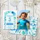This Under The Sea invitation design features lots of watercolor ocean animals including Jellyfish, Seahorses, sea turtles, starfish, sea shells and more in a colour palette of greens and blues. On the right hand side you can add your own photo. On the back of the design is an ocean animals pattern. Customise all the details for your event, you can change this design to suit any name, age and gender. See the whole matching collection.