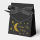 Under the stars, birthday, quinceanera and sweet 16 events. Black night sky background with gold moon and stars