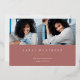 Simple and modern graduation photo announcement features two photos aligned side by side, with the graduate's name, school, and class year beneath in white lettering on a dusty rose pink background. Your graduate's name and school appear beneath, and a chic gold foil accent completes the design. Add a personal message to the back, along with an additional photo.