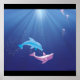 A vibrant digital photo of two dolphins having fun in the ocean with jelly fish slinking in the background. A colourful photo for any child's room, dolphin lover and everyone else who likes what they see :).