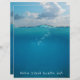 Blue water background scrapbook paper and craft paper. The image is a partial underwater view, with bubbles beneath the surface with the horizon and sky above. White, hand-printed text along the bottom can hold the page title or any wording. Text aligns to the bottom. The same image, but no text template, is on the other side of the paper which measures 8.5 x 11 inches. Use in a scrapbook, photo album, or any purpose. This product has many paper options.