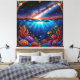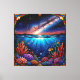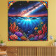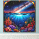 Colourful underwater coral reef themed stained glass art with vibrant marine life. Showcased with a starry night sky above, creating a surreal and beautiful natural-themed piece.