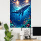 A beautiful and vivid underwater illustration captures the majesty of a humpback whale swimming peacefully. The scene is bathed in sun rays that penetrate the water's surface, creating a fascinating play of light and shadow.