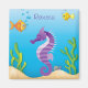 A cute magnet with a cute underwater scene featuring a purple cartoon seahorse swimming near the bottom of the beautiful blue ocean with fish and seashells in the background. The text is fully customisable for your own name or special occasion. sgb01
