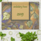Undulating leaves, art by Kristie Hubler, with 2015 calendar on a kitchen tea towel. These leaves are for raspberries. In greens, camel golds, loden, and dark periwinkles. Nature's bounty. A Walk through the woods. Rustling leaves.