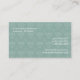 Simple and elegant is the way to go. One classic fleur de lys ornament in dark sage green serves as the focal point of this business card suitable for a variety of professions including financial services, real estate, publishing, consultanting, etc. The fleur de lis is repeated in a pattern on the back. Available in alternate colours.