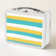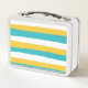 Uneven Stripes - Turquoise and Yellow Metal Lunch Box