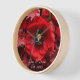 Elegant red floral clock featuring a bouquet of intensely red flowers, perfect to add that unepected red touch to your home decor. The text is fully editable, making it a great housewarming gift for a new home.