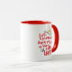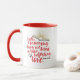 This stylish two-toned bright red scripture mug with colour accented rim and handle displays bible verse Psalm 143:8—a comforting reminder that the Lord's tender mercies and steadfast love towards us are renewed every morning. A perfect way to sip while savouring this encouraging truth during your morning devotion time! Available in 11oz and 15oz sizes and with a variety of colour accents using the style picker tool.