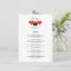Unforgettable Las Vegas wedding reception menu template. Elegant template for classy typography and hearts logo. Beautiful templates for couples getting married in Vegas. Part of matching set in similar style and colour palette. Perfect for gambling / casino theme marriages. Black and white with red colour combination. Logo printed on two sides.