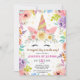 Unicorn 1st Birthday Pink Girl Floral Rainbow Invitation