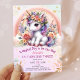 Unicorn 3rd Birthday Girl Pink Floral Rainbow Invitation