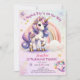 Unicorn 3rd Birthday Girl Purple Gold Rainbow Invitation