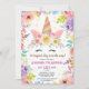 Unicorn 7th Birthday Colourful Floral Rainbow Invitation