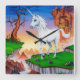 Fantasy art magical Unicorn Kingdom. Magical fantasy scene of a noble unicorn overlooking its kingdom. Airbrush and water colour illustration. Watch out for other great products featuring this original design.