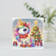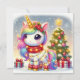 Unicorn Adorned with Lights by the Christmas Tree Holiday Card