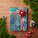 UNICORN AMONG BLUE FLOWERS Aqua Blue Green Floral Wrapping Paper