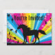 Personalised silhouette unicorn and fairies with a grunge rainbow background birthday party invitation for girls.