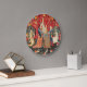 UNICORN AND LADY PLAYING ORGAN,ANIMALS Red Green Large Clock