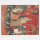 Antique tapestry woven in Brussels around 1500. Princess making music in flower garden with an unicorn ,lion and other animals.,digital elaboration and design by Bulgan Lumini