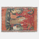 Antique tapestry woven in Brussels around 1500. Princess making music in flower garden with an unicorn ,lion and other animals.,digital elaboration and design by Bulgan Lumini
