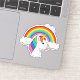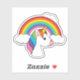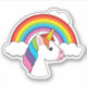 An illustration of a cute unicorn with colourful hair and pink mounth, and rainbow with white clouds. This adorable kawaii fairytale design is a gift idea for girly thing lovers, animal lovers and magical films lovers.