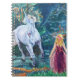 Spiral notebook featuring a fantasy illustration of a unicorn running through the forest and encountering a young girl. "Encounter in the Woods" artwork copyright: Dominic A. White. All rights reserved.