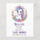 Unicorn baby shower. Invite family and friends with this personalised party invitation. It features a cute unicorn. Personalise this unicorn party invitation by adding a name, date, time, location and more. This baby shower invitation is perfect for a baby shower. Matching items available.
