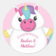 Cute unicorn baby shower design with a stuffed animal unicorn cartoon! The pink background and hair accents make it great for a baby girl on the way!